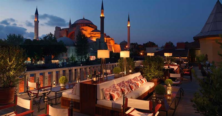 Het 5-sterren Four Seasons Hotel Istanbul ligt op zes kilometer van het centrum. Het is een prachtig hotel met een mooie tuin en prachtig terras.